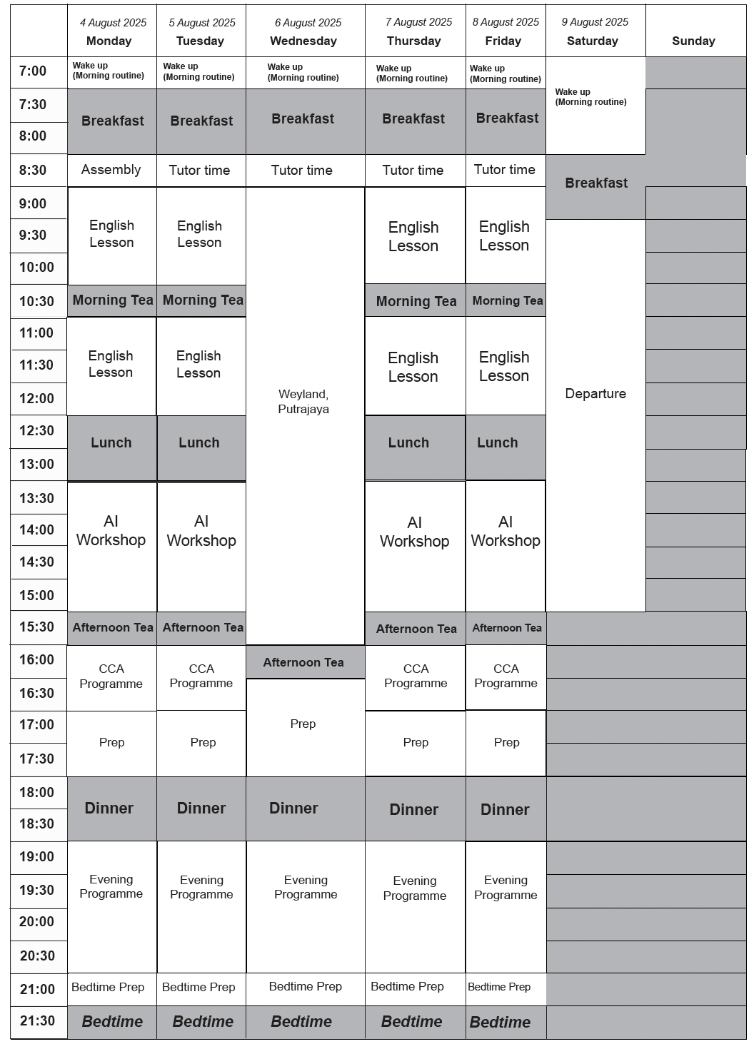 期間中、キングヘンリー8世カレッジ・マレーシアの寮施設に宿泊